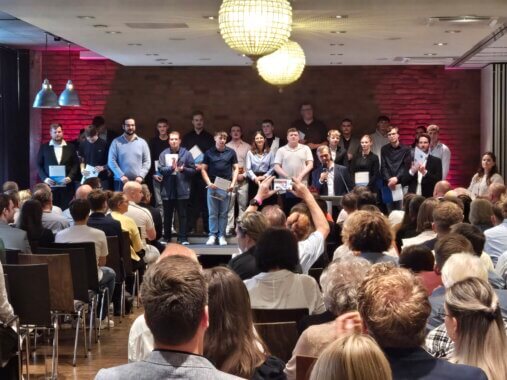 Vor einer Woche war es soweit, unsere beiden (Ex-) Azubis wurden feierlich im Hotel Altes Stahlwerk in Neumünster nach zwei (Mika hat Abitur und kam in den Genuss der Möglichkeit einer verkürzten Ausbildungszeit) bzw. drei Jahren Ausbildungszeit zu Fachkräften für Lebensmitteltechnik ernannt. Der stellv. Leiter der Landesberufsschule der Ausbildungsberufe Maschinen- und Anlagenführer Schwerpunkt Lebensmitteltechnik sowie Fachkräfte für Lebensmitteltechnik, Sebastian Kluge, führte mit Vertretern der IHK zu Kiel sowie der Walther-Lehmkuhl-Schule durch den Abend und verabschiedete nicht nur 21 Falets, sondern auch noch 30 Maschinen- und Anlagenführer in die nun beginnende berufliche Laufbahn.