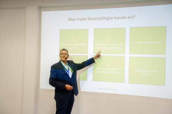 Motivation entstehe vor allem durch Sinn, wertschätzenden Umgang und gute Beziehungen am Arbeitsplatz. Führungskräfte haben die Aufgabe, Rahmenbedingungen zu schaffen, die solche Motive erfüllen, um Beschäftigte langfristig zu binden und zu begeistern.